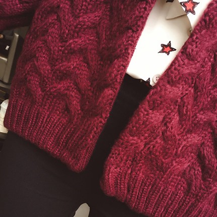 洋气网红上衣春秋季2020新款秋装短款针织开衫粗线很仙的毛衣外套