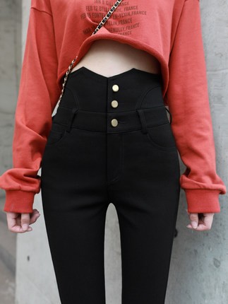 高腰打底裤女裤外穿春秋冬款紧身显瘦百搭小脚黑色铅笔魔术小黑裤